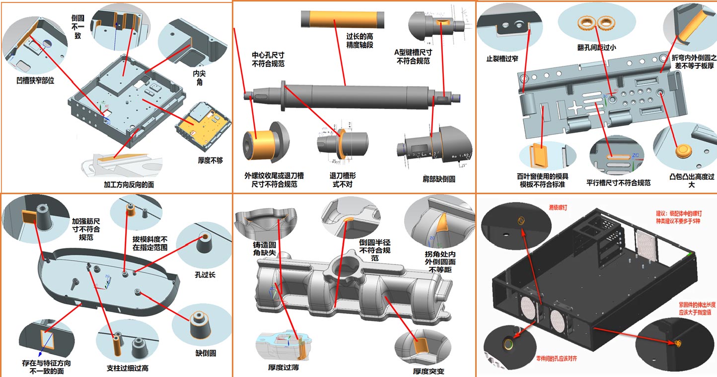 實(shí)現(xiàn)與三維CAD系統(tǒng)的無縫集成,基于三維產(chǎn)品模型進(jìn)行工藝性審查。通過與三維CAD系統(tǒng)的無縫集成,能夠并利用三維CAD系統(tǒng)對(duì)設(shè)計(jì)模型進(jìn)行審查結(jié)果的顯示