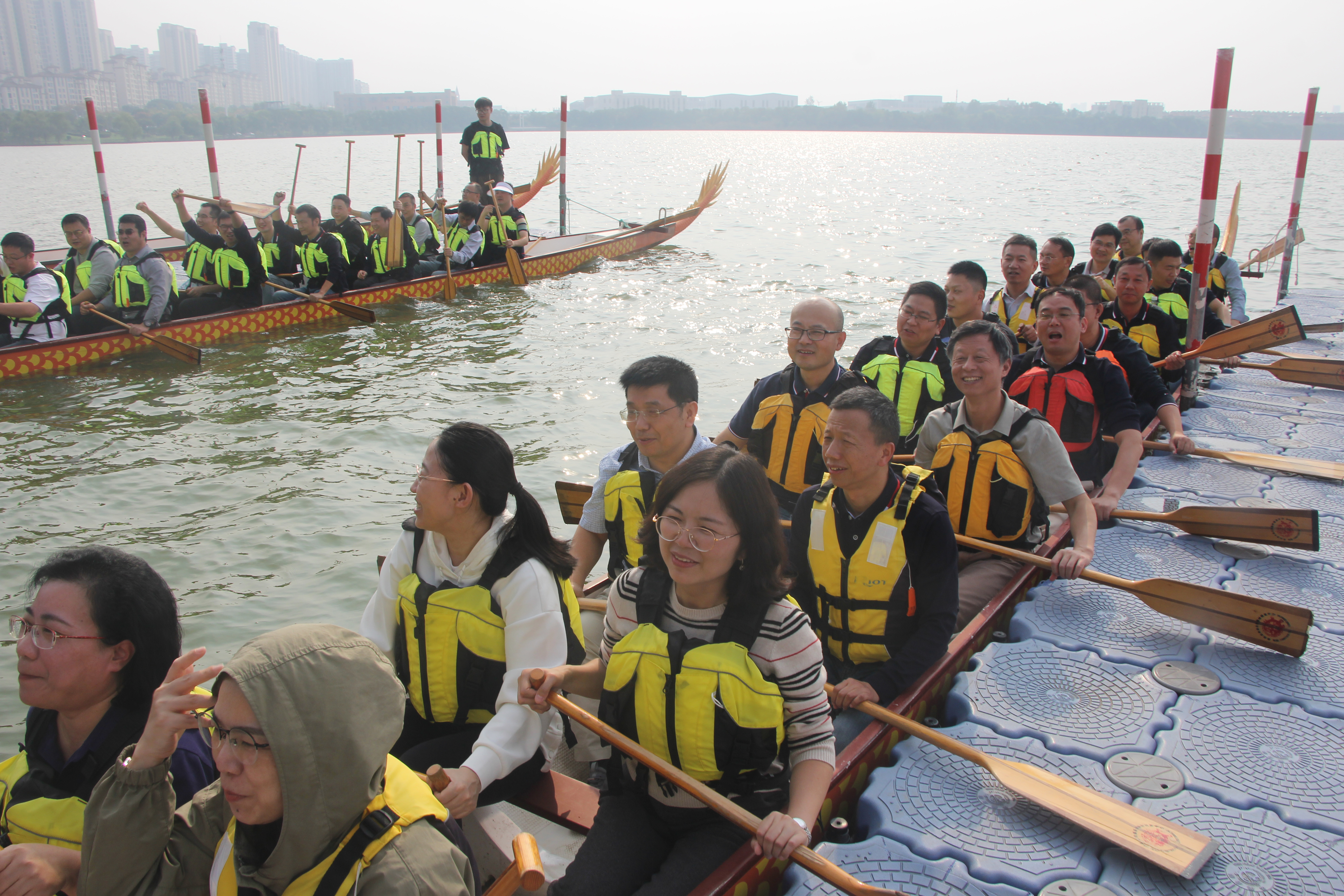 10月13日下午,開目軟件“百舸爭流,同心爭先”賽龍舟主題團建活動順利舉行,由“開拓隊”、“遠(yuǎn)大隊”組成的2條龍舟展開競賽,讓團隊成員充分體驗到了你追我趕、勇爭第一、力爭上游、精誠團結(jié)的“龍舟精神”,并堅信只要大家勁往一處使,必能到達勝利的終點。