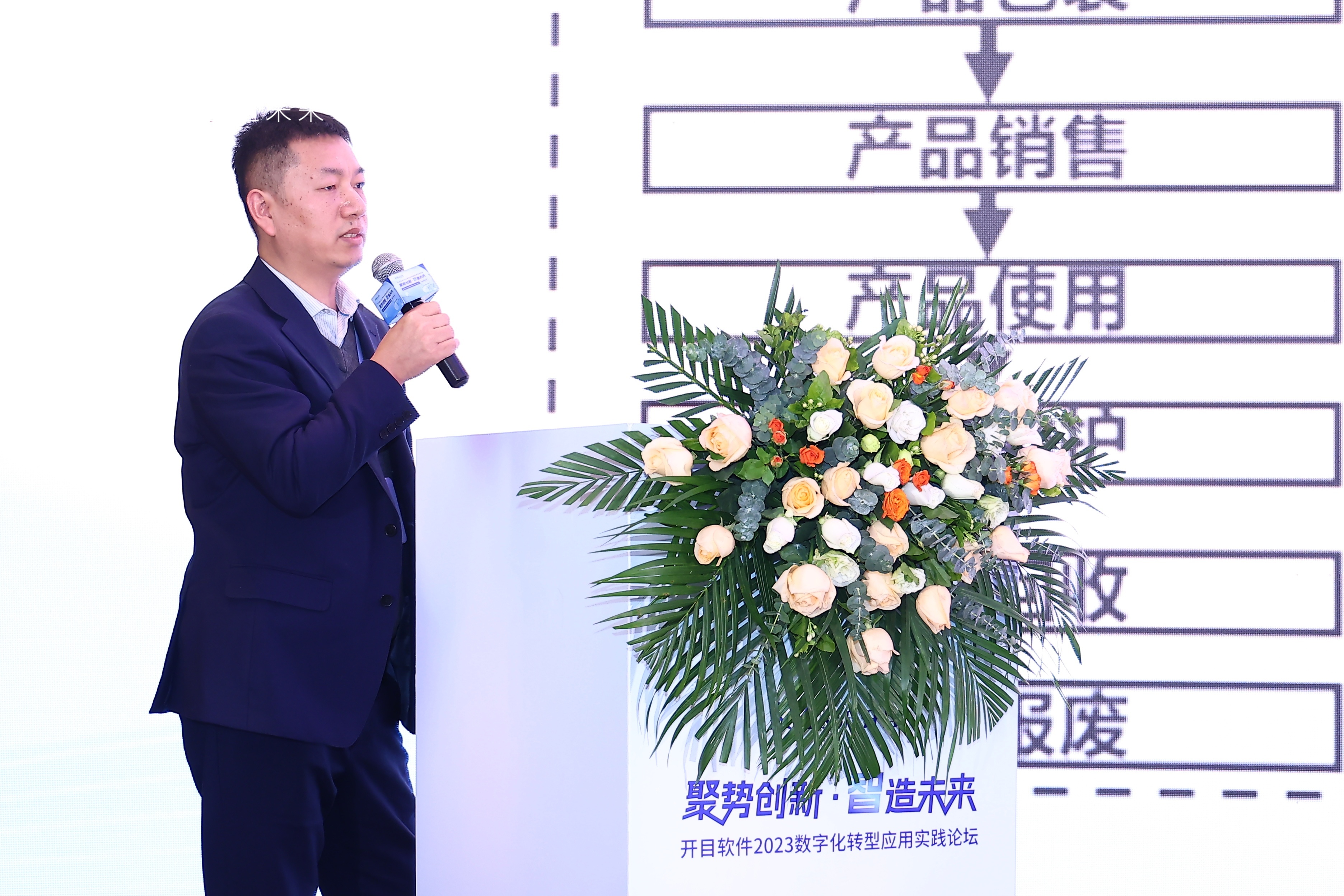 航天科工集團某公司信息化專家李部長在 《先進制造業(yè)的數(shù)字化工藝制造端到端應(yīng)用實踐》主題演講中,從企業(yè)信息化現(xiàn)狀為切入點,圍繞項目背景、項目方案、項目成果、項目展望等,分享了企業(yè)在數(shù)字化轉(zhuǎn)型、智能化生產(chǎn)過程中的創(chuàng)新實踐成果與體會,為開目研發(fā)工藝制造一體化解決方案打“call”。