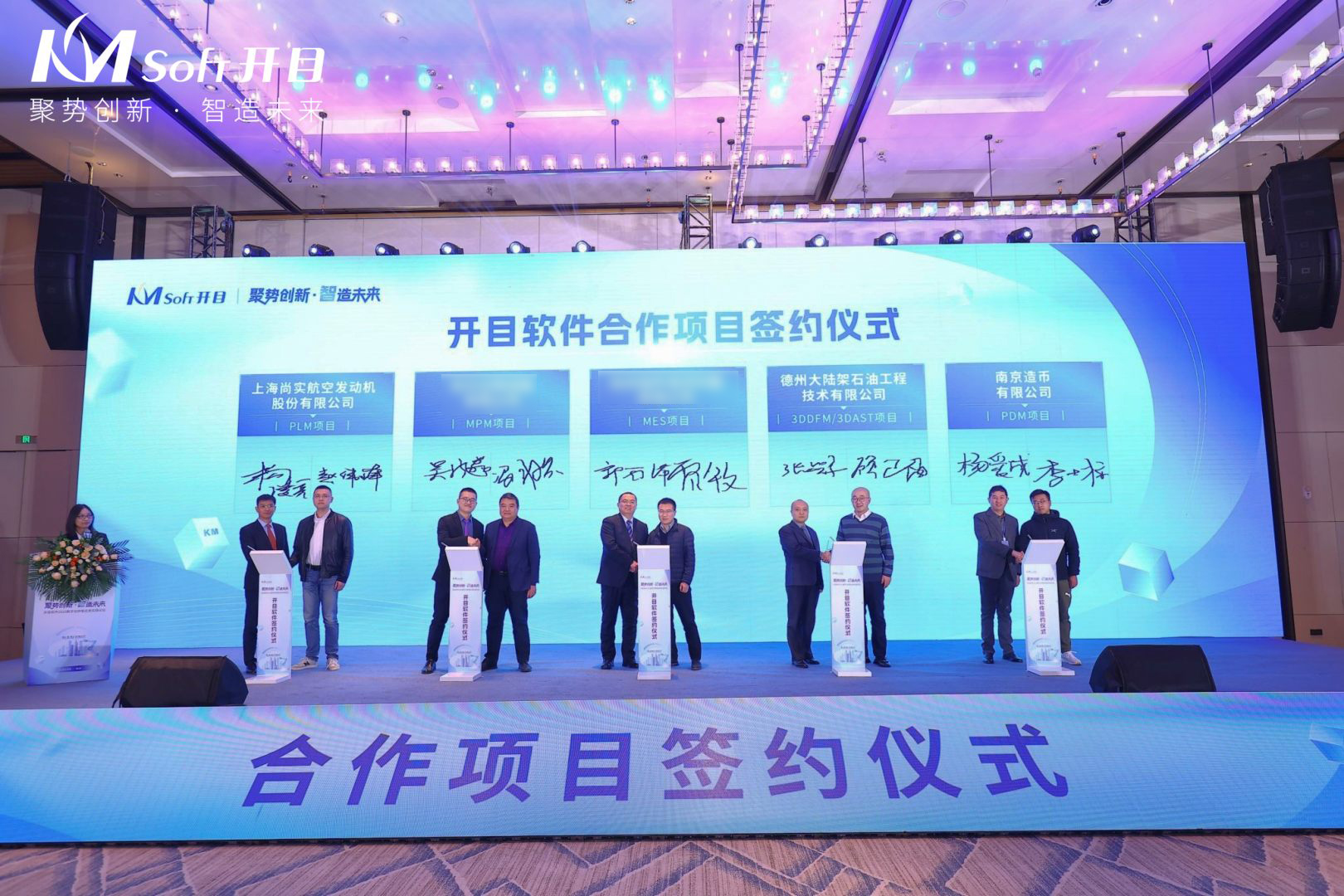 會上,在各位來賓的共同見證下,開目軟件分別與上海尚實航空發(fā)動機股份有限公司、航空工業(yè)集團某公司、中國船舶集團某公司、德州大陸架石油工程技術(shù)有限公司、南京造幣有限公司簽訂數(shù)字化建設(shè)的項目合作協(xié)議,在開目的助力下,各企業(yè)積極探索數(shù)字化研發(fā)、數(shù)字化工藝、數(shù)字化制造等的應(yīng)用實施,雙方將優(yōu)勢互補、齊心協(xié)力,加快推動各企業(yè)數(shù)字化轉(zhuǎn)型戰(zhàn)略落地。