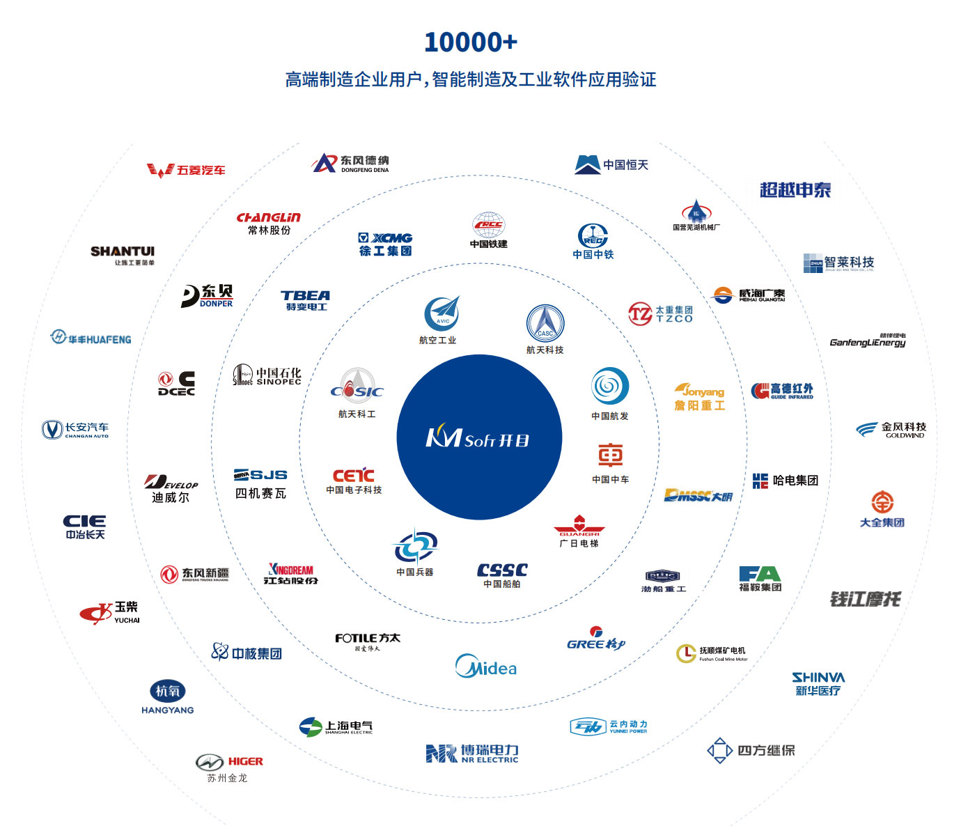 經(jīng)過30多年的實踐,開目軟件已積累了航空航天、兵器船舶、高科技電子、汽車、工程機械等行業(yè)的多家標桿客戶,其產(chǎn)品被廣泛應用于航發(fā)、兵裝、電科等軍工集團,以及中國鐵建、中國中車等中國500強高端制造業(yè)龍頭企業(yè),并為國產(chǎn)大飛機、航空發(fā)動機、中國高鐵、大型盾構(gòu)機等重大型號工程提供了先進的數(shù)字化技術(shù)支撐,高端客戶市場占有率在國產(chǎn)工業(yè)軟件中名列前茅。