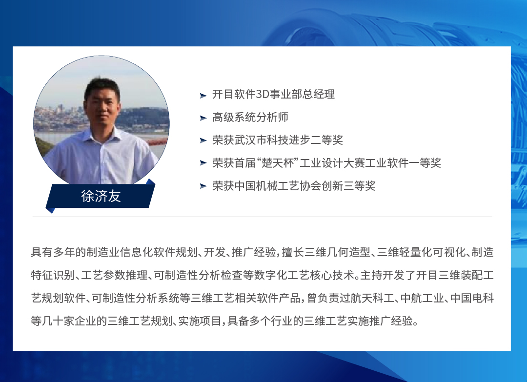 本期研討會特邀開目公司3D事業(yè)部總經(jīng)理、高級系統(tǒng)分析師徐濟(jì)友先生,超越科技股份有限公司中試部總經(jīng)理、三維工藝規(guī)劃實(shí)施專家孫永升先生,聚焦三維數(shù)字化工藝與制造,深入研討企業(yè)如何借助3DDFM在設(shè)計(jì)早期階段考慮產(chǎn)品的可制造性和可裝配性,從而縮短產(chǎn)品開發(fā)周期、降低開發(fā)成本。并針對線上觀眾提出的問題,進(jìn)行實(shí)時在線答疑解惑,共同探討三維數(shù)字化智能工藝審查進(jìn)階之路。