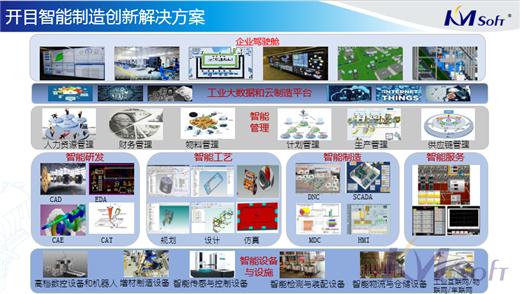 新產(chǎn)品中,開目智能制造整體解決方案是開目公司依據(jù)“中國制造2025”總體規(guī)劃要求,提出針對離散型制造企業(yè)的智能制造系統(tǒng)解決方案,該方案通過對物聯(lián)網(wǎng)、云計(jì)算、大數(shù)據(jù)、人工智能等先進(jìn)技術(shù)的融合創(chuàng)新方式,為制造企業(yè)提供包括智能研發(fā)、智能工藝、智能生產(chǎn)、智能管理、智能服務(wù)、智能設(shè)備、云制造平臺(tái)、系統(tǒng)集成等全方位的軟硬件產(chǎn)品,并提供資源整合、立項(xiàng)策劃、項(xiàng)目實(shí)施、宣傳推廣等全流程的智能制造項(xiàng)目服務(wù)。