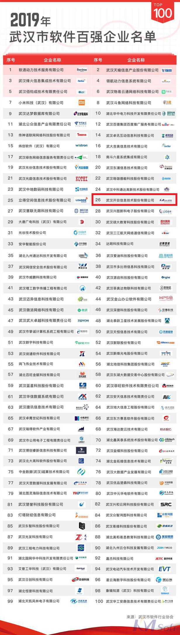7月31日,武漢市經(jīng)濟(jì)和信息化局、武漢市軟件行業(yè)協(xié)會(huì)發(fā)布了“2019年武漢市軟件百強(qiáng)企業(yè)發(fā)布會(huì)”,武漢開目信息技術(shù)股份有限公司光榮入選本次百強(qiáng)榜單。