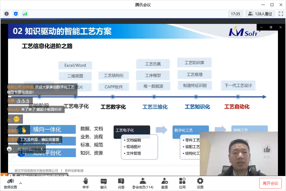 航天科技九院某公司高級(jí)工程師張工也進(jìn)行了《基于KMCAPP平臺(tái)的結(jié)構(gòu)化工藝設(shè)計(jì)》主題分享,從項(xiàng)目概況、系統(tǒng)應(yīng)用、總結(jié)與展望展開,分享了該企業(yè)工藝、制造協(xié)同應(yīng)用成果。并講到開目結(jié)構(gòu)化工藝系統(tǒng)實(shí)現(xiàn)全面精準(zhǔn)的工藝資源管理以及與SAP、MES等系統(tǒng)集成打通等,充分推動(dòng)公司產(chǎn)品工藝實(shí)現(xiàn)了標(biāo)準(zhǔn)化和規(guī)范化,工藝編制效率和質(zhì)量也得到了顯著提升。