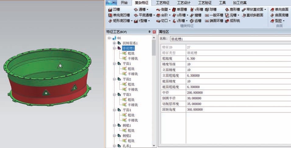 (1)通過(guò)三維工藝設(shè)計(jì)軟件對(duì)機(jī)匣三維模型進(jìn)行特征識(shí)別,提取機(jī)匣模型幾何信息以及非幾何信息并形成加工特征集(圖11)。
