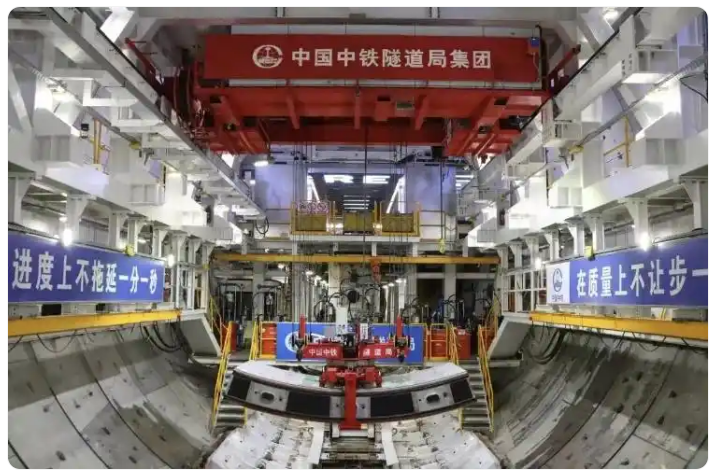 甬舟鐵路金塘海底隧道,“定海號”“甬舟號”盾構(gòu)機(jī)相向“穿?!薄9芷悄苓\(yùn)輸系統(tǒng)如“地下物流網(wǎng)”,將14噸重的管片精準(zhǔn)送達(dá)拼裝位,效率提升40%。