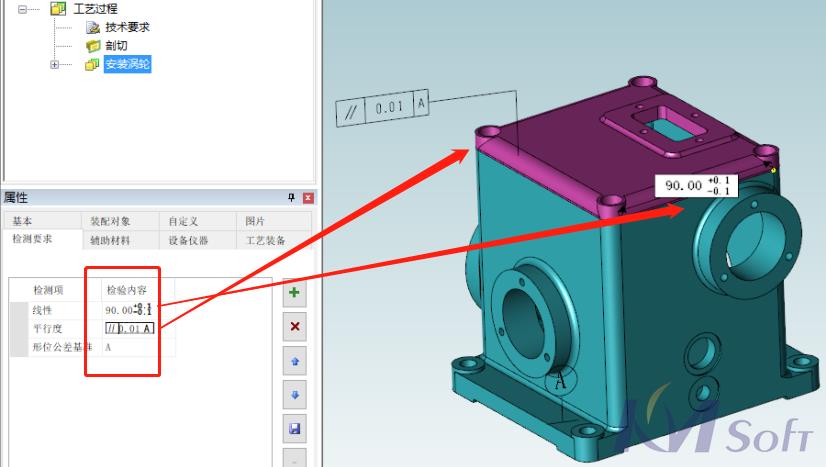 為進一步提高編排效率,節(jié)約時間成本,3DAST 13.0新增PMI獨立展示、檢測要求自動填寫功能。用戶通過點選模型中尺寸標注、文本等PMI信息,自動填入檢測要求屬性內(nèi),同時還可以通過一鍵式操作方式,提取模型中所有PMI屬性。