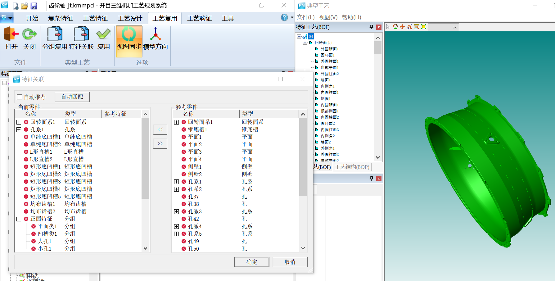 ? 優(yōu)化基于樣件的工藝復(fù)用。新增分組復(fù)用,支持以特征組為節(jié)點(diǎn)進(jìn)行工藝復(fù)用,同時(shí)繼承復(fù)用的工藝尺寸。
